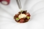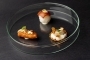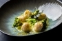 Prvi slijed – kombinacija tune, korabice, dimljenog krumpira i sezama – poslužen je uz Rose Festigiu 2024. vinarije Laguna. Drugi slijed, ravioli sa slanim sardonima, pistacijom i paljenim keljem, pratio je Cabernet Sauvignon „Grand Selection“ 2021. vinarije Antunović. U nastavku je skuša s barbeque salatom, misom i grožđem bila uparenja s Cabernet Sauvignonom Degrassi iz 2016., dok je desert od kestena, gljiva, čokolade i sourdougha zaokružio večer uz slatki Cabernet Sauvignon 2024. vinarije Apolitico, proizveden od prosušenog grožđa.